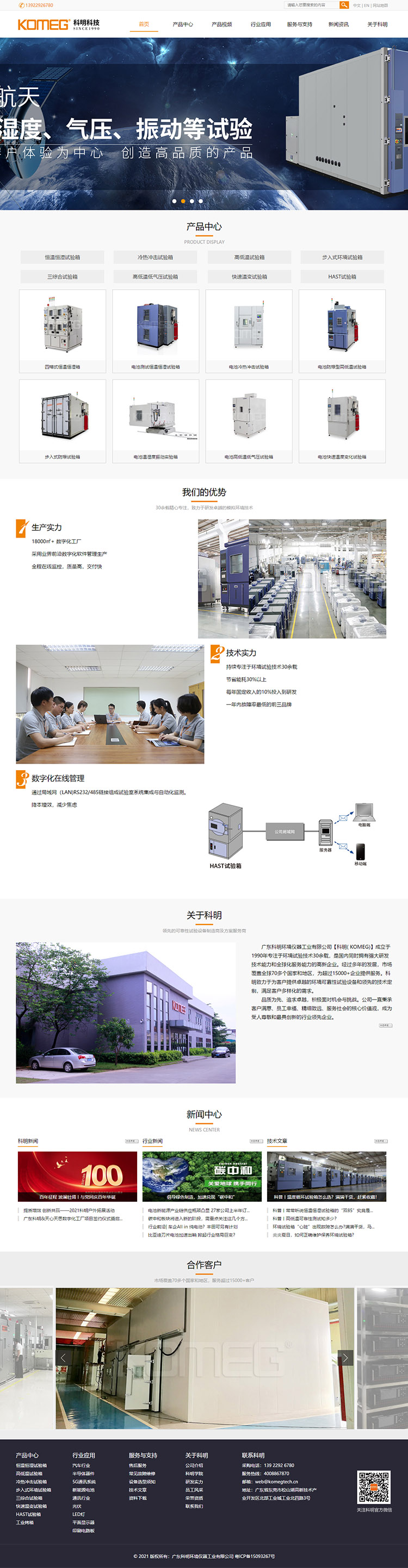 廣東科明環(huán)境儀器工業(yè)有限公司【科明( KOMEG)】成立于1990年專注于環(huán)境試驗技術(shù)30余載,是國內(nèi)同時擁有強大研發(fā)技術(shù)能力和全球化服務能力的高新企業(yè)。經(jīng)過多年的發(fā)展,市場覆蓋全球70多個國家和地區(qū),為超過15000+企業(yè)提供服務。科明致力于為客戶提供卓越的環(huán)境可靠性試驗設備和領(lǐng)先的技術(shù)定制,滿足客戶多樣化的需求。